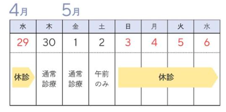 ゴールデンウイーク期間中は上記のとおりの診療になります。
