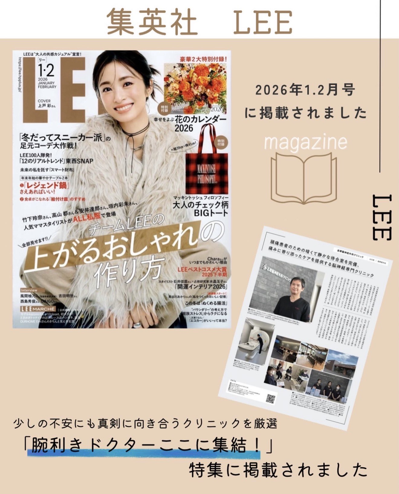 2025年12月5日発売の女性誌『LEE(リー)』1・2月合併号(集英社)に、当クリニックが掲載されました。
